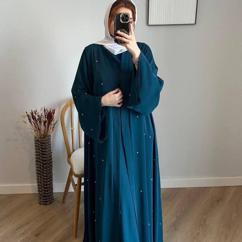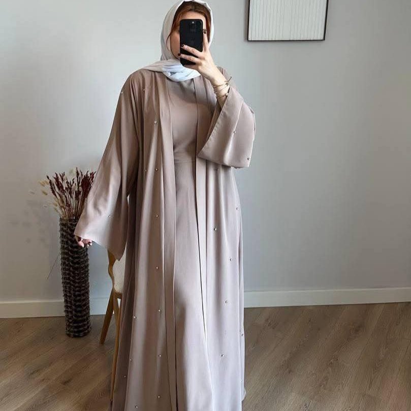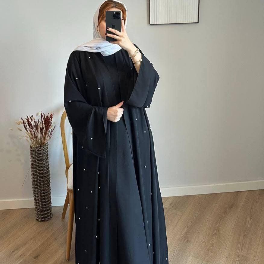 Abaya 2 pièces ornée de pierres appliquées à la main